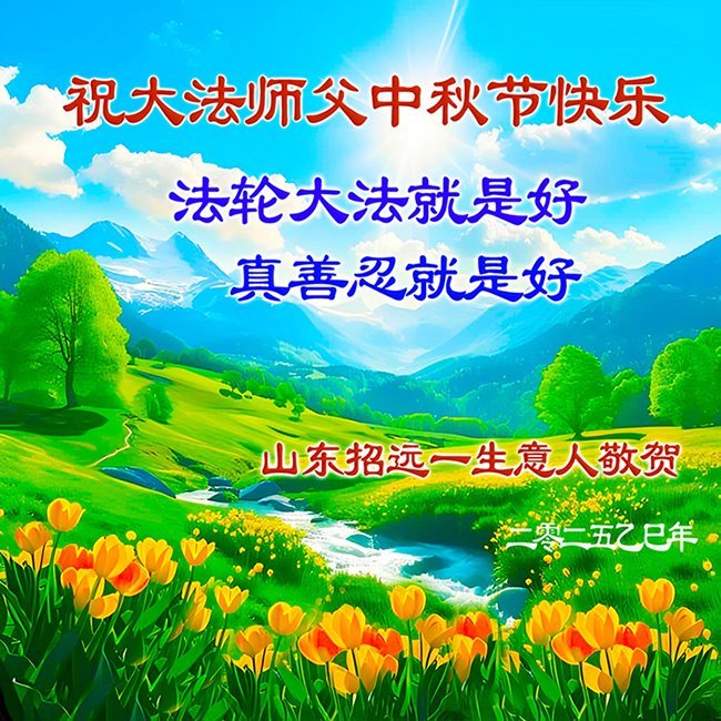 恭祝大法师父中秋节快乐! 在中秋佳节即将到来之际,感恩大法师父把这高德大法传给世人,让我们懂得了做人的道理,做好人就能得到大法师父的保护,能在这乱世中平安度过一个又一个劫难。谢谢大法师父! 河北省唐山市丰润区一大法弟子明真相的家属敬上 二零二五年九月二十七日 河北张家口赤城县一大法弟子代一明真相的男士恭祝师父中秋佳节快乐!