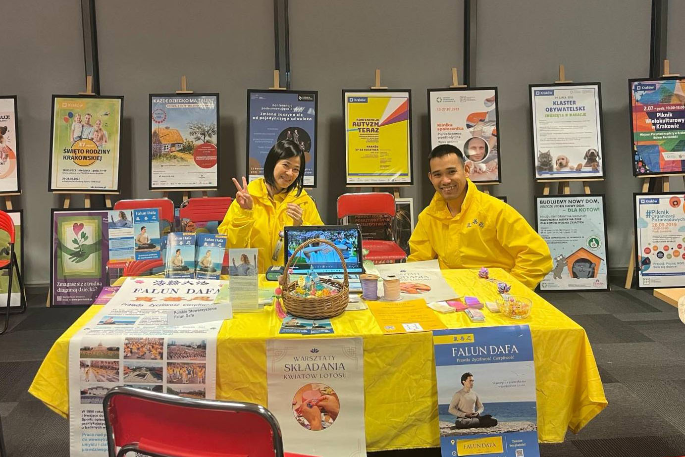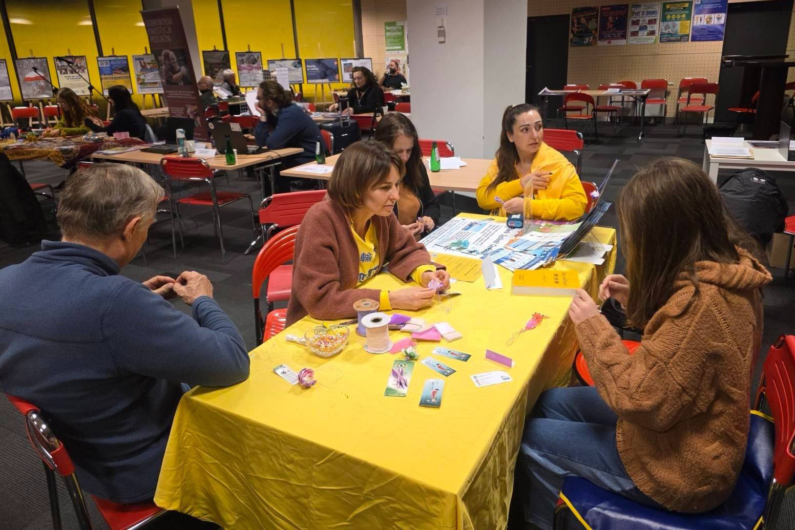 | 【明慧网二零二五年十一月三十日】二零二五年十一月二十五日,法轮功学员受邀在波兰克拉科夫的市民中心(地址:Reymonta街20号)举办法轮大法信息日活动,当时正值该市举办非政府组织节。学员还播放了题为“法轮功是什么?”的视频介绍片。第一次接触法轮大法的克拉科夫市长代表阿图尔·布谢克表示:“这(法轮大法)正是我们需要的”,鼓励人们“停下来感受内心的平静。” 法轮大法(也称法轮功)是一种传统的打坐和自我修炼功法,基于真、善、忍原则,结合舒缓的功法动作和打坐。经常炼功,人们可以改善健康、减轻压力、获得能量、达到内心的平静,并提升道德标准。一九九二年,李洪志先生在中国公开传出法轮大法。如今,法轮大法已弘传全世界一百多个国家,法轮大法的著作被翻译成五十种语言。  图1~2:二零二五年十一月二十五日,法轮功学员受邀在波兰克拉科夫的市民中心举办法轮大法信息日活动,向民众介绍法轮大法。 |