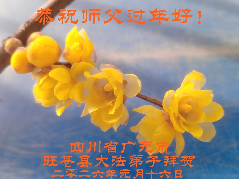 恭祝师父过年好: 冬去春来,严寒将尽,遥祝师父过年好!感恩师父慈悲救度! 弟子献上金梅一枝,以梅花明志,忍苦精進,跟随师父回归天国家园。 四川省广元市旺苍县大法弟子敬上 四川省广元市旺苍县全体大法弟子恭祝师尊过年好!
