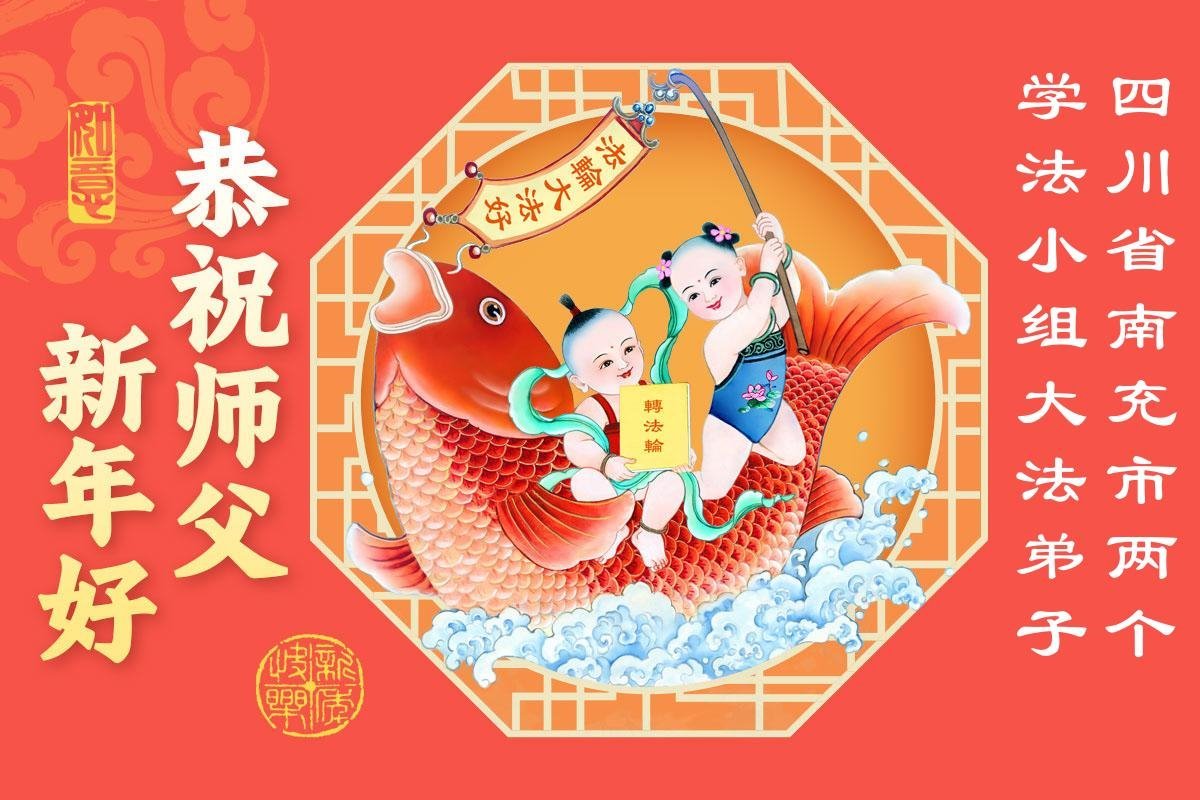 四川省南充市两个学法小组大法弟子恭祝慈悲的师父新年好!