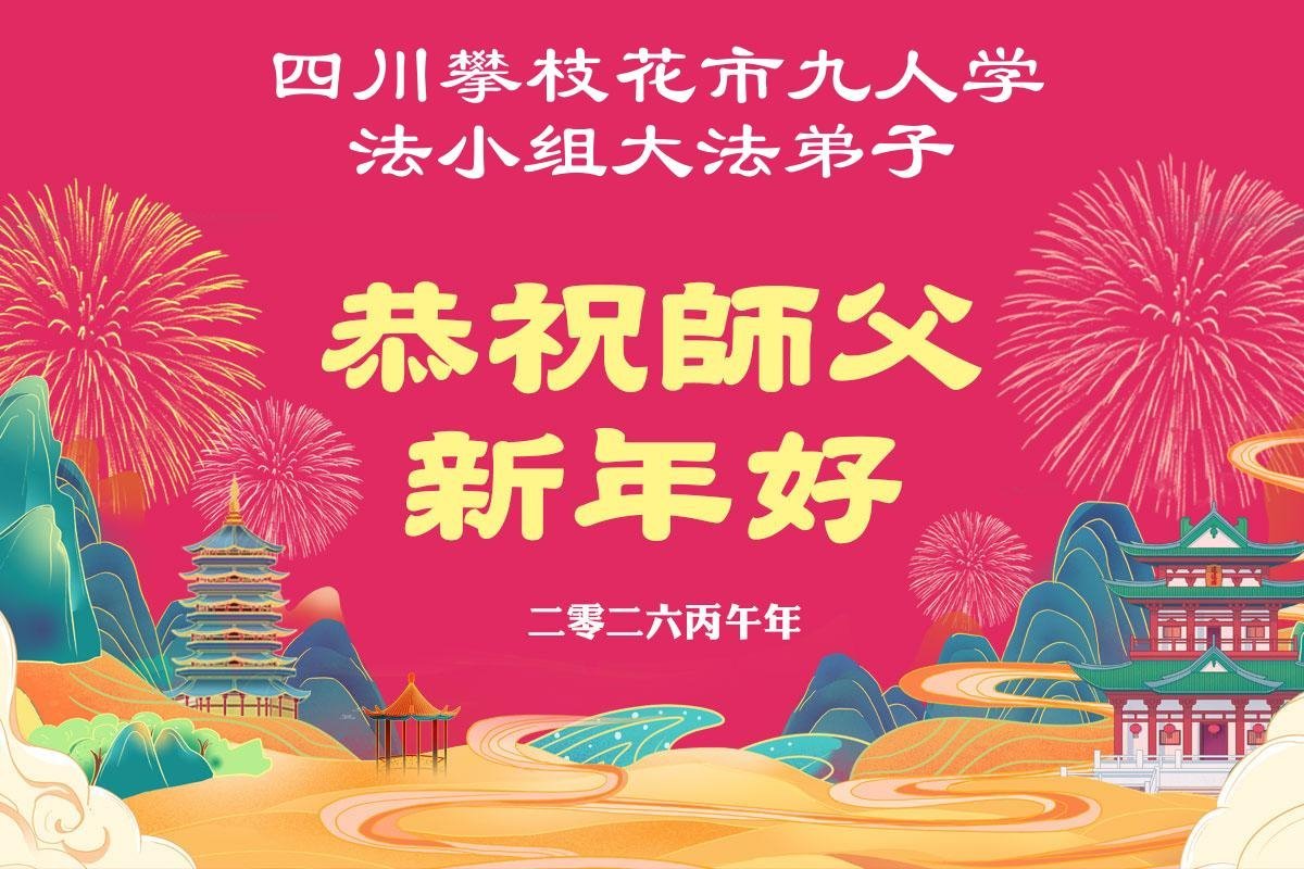 恭祝慈悲伟大的师尊新年快乐! 四川省攀枝花市九人学法小组大法弟子敬上 二零二六年一月十九日 四川省一大法弟子恭祝师父新年快乐!