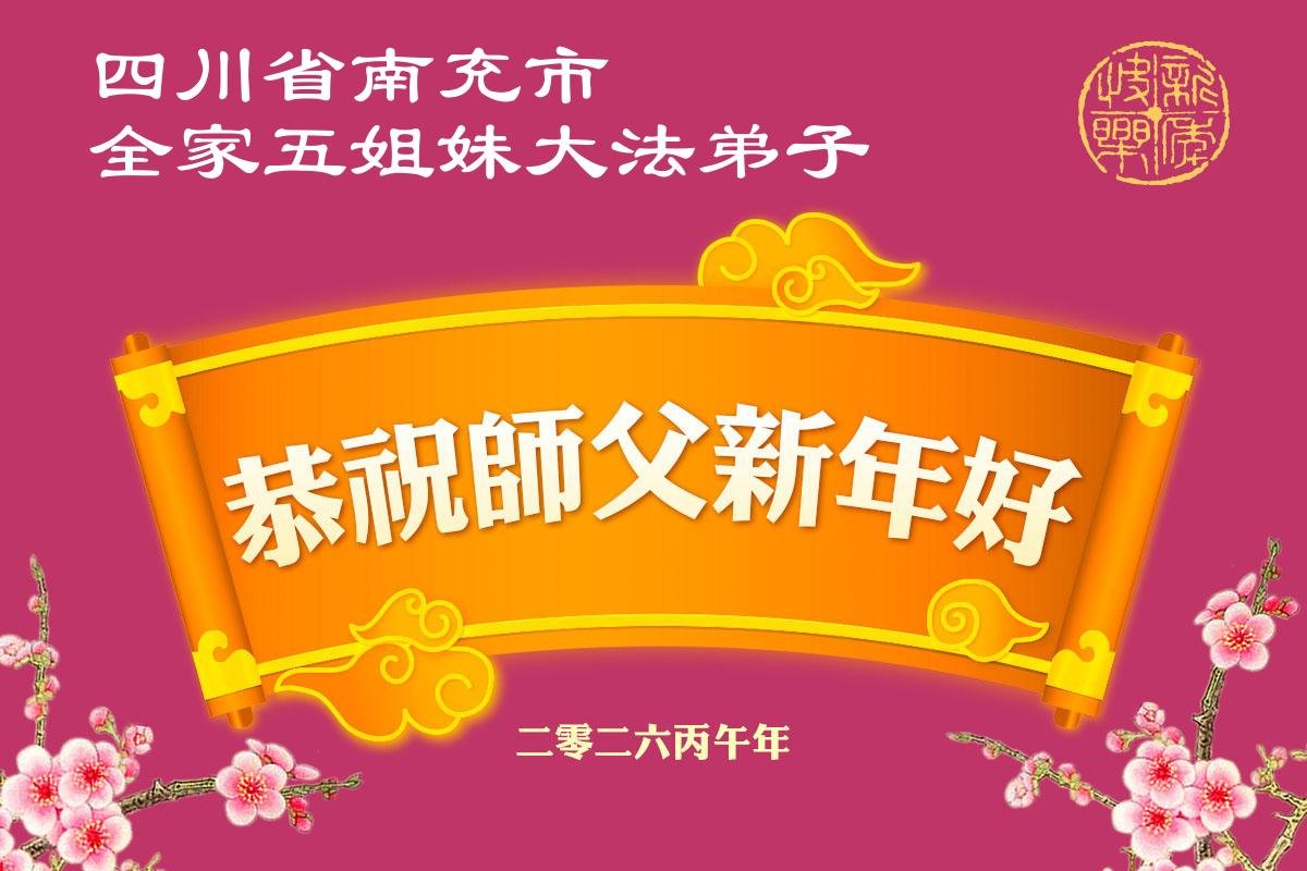 四川省南充市多家夫妻大法弟子 二零二六年一月二十二日 四川省南充市四家母女大法弟子恭祝慈悲的师父过年好!
