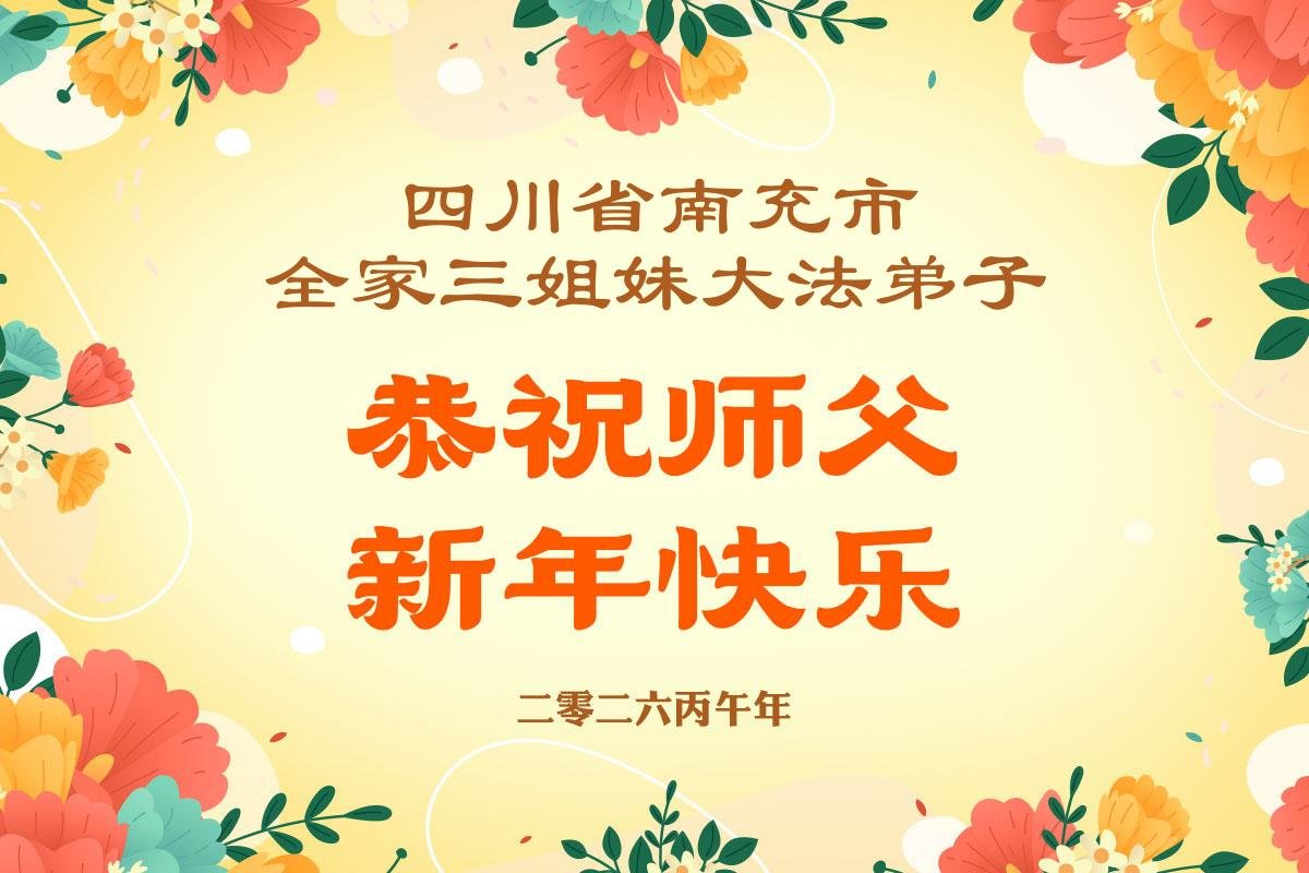 四川省南充市全家三姐妹大法弟子 二零二六年一月二十二日 四川省南充市一家兄弟大法弟子恭祝慈悲的师尊新年快乐!