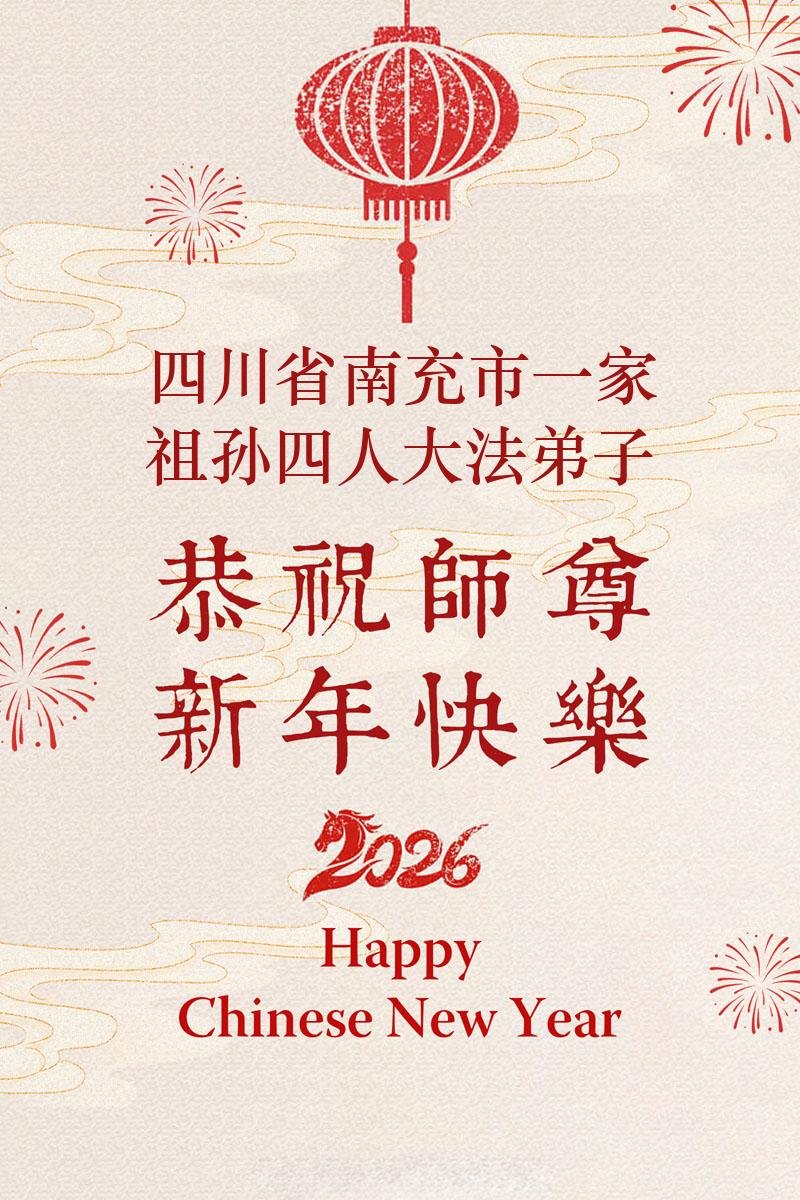 四川省南充市多组讲真相的大法弟子敬上 二零二六年一月二十二日 四川省乐山市一大法弟子与全家恭祝慈悲伟大的师尊新年快乐!