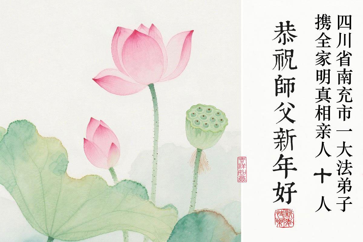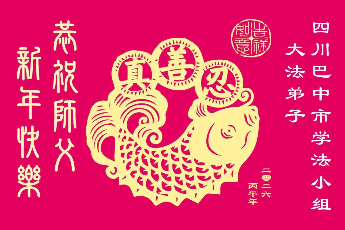 恭祝慈悲的师父新年好! 四川省南充市一学法小组大法弟子敬上 二零二六年一月十八日 四川省南充市全体大法弟子恭祝慈悲的师父过年好!