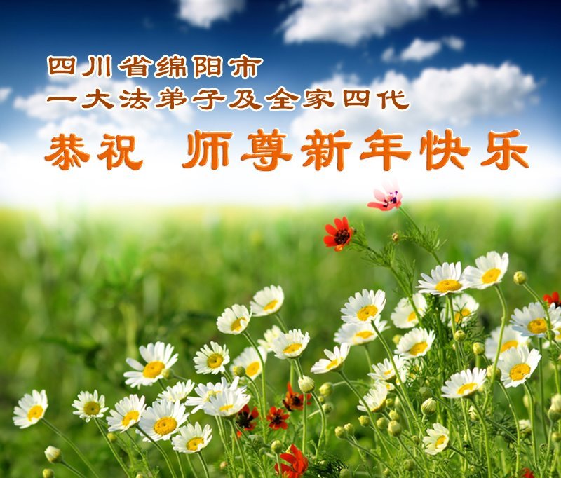 四川省绵阳市一大法弟子及全家四代众生恭祝师尊新年快乐!