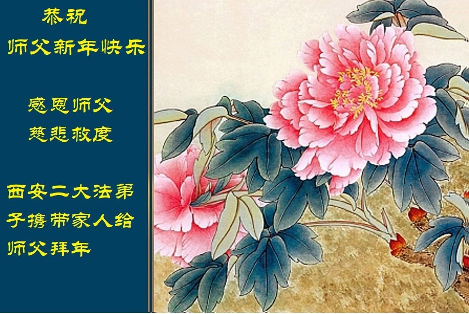 恭祝师父進新年快乐!感恩师父慈悲救度! 陕西省西安市大法弟子敬上 甘肃省兰州市大法弟子及家人恭祝慈悲伟大的师父新年好!