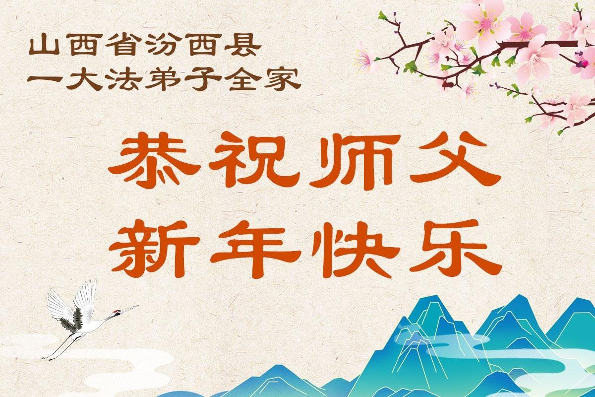 恭祝尊敬的师父新年快乐!师尊您辛苦了!感恩师尊这么多年的慈悲苦度,一次次的从死神中夺回弟子的生命,弟子无法用人间的语言表达对师父的感恩。弟子唯有精進实修、真修,做好三件事,多救人回报师恩!叩谢师恩! 山西省临汾市汾西县一大法弟子敬上 二零二六年一月二十四日 山西省临汾市汾西县一大法弟子全家恭祝慈悲伟大的师尊新年好!