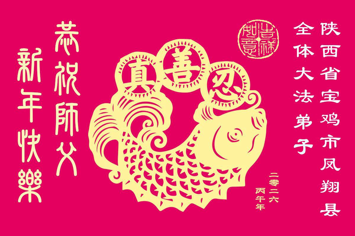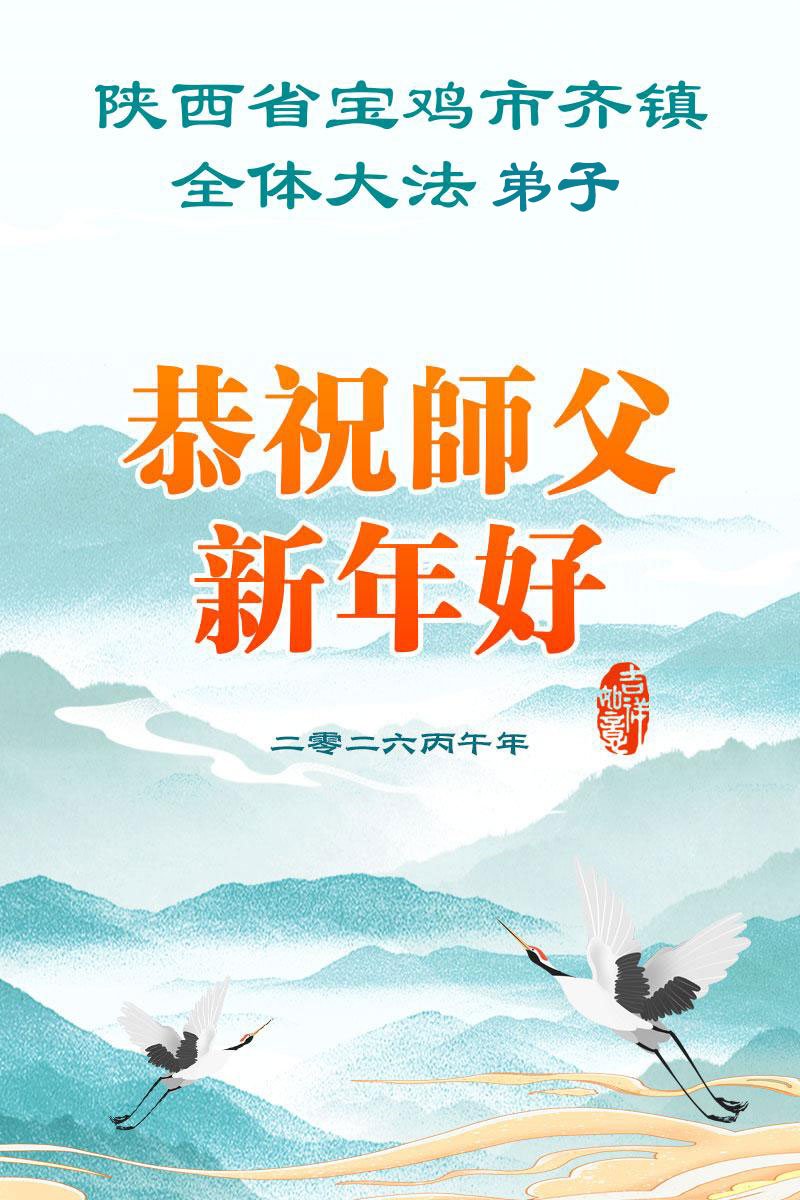慈悲伟大的师父好!在中国新年来临之际,向慈悲伟大的师父致以崇敬的感谢!是师父把我们领到修炼这条金光大道,使弟子无病一身轻,事事如意,弟子无从回报师恩,只有真正实修,精進、精進、再精進,做好三件事,回报师恩! 法轮大法好,真善忍好! 陕西宝鸡市渭滨区大法弟子敬上 二零二六年一月二十六日 陕西省宝鸡市渭滨区大法弟子恭祝师尊新年好!