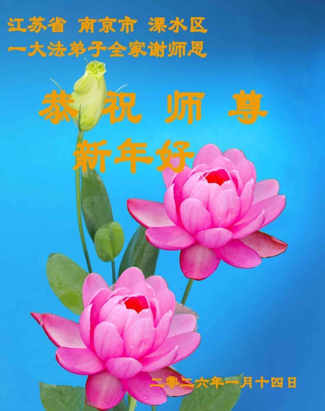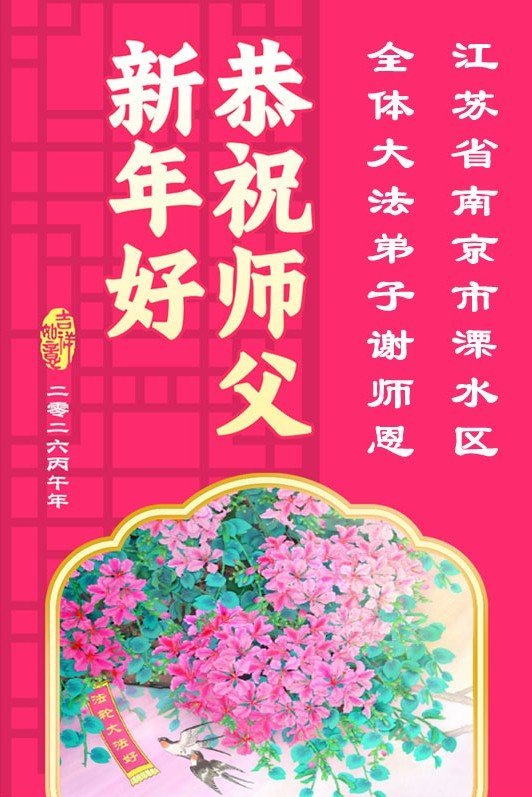 师尊,您辛苦了!弟子感恩师尊的慈悲救度! 江苏南京市溧水区一大法弟子恭祝师尊新年快乐!