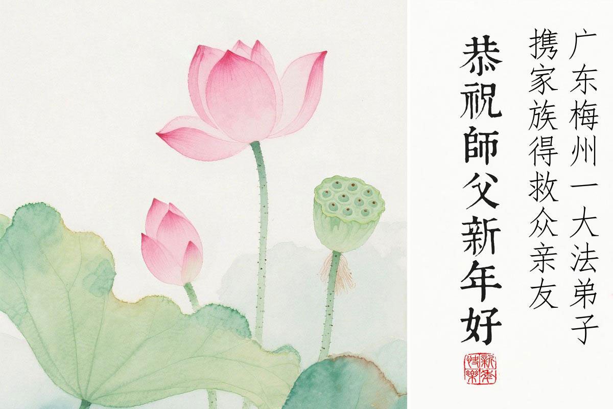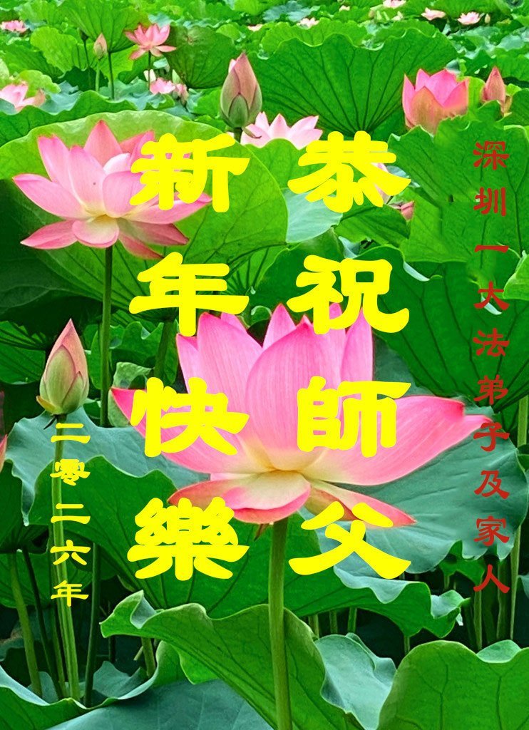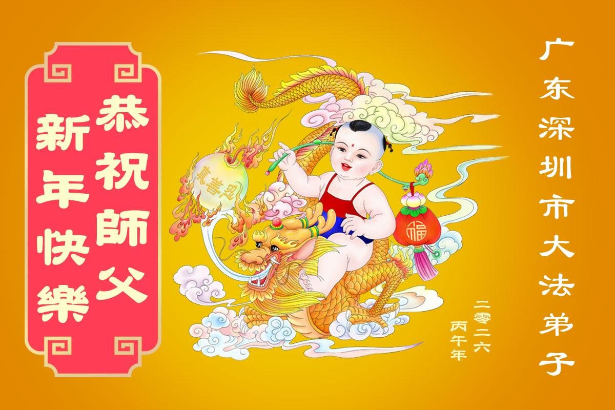 恭祝师尊新年好!弟子感恩师尊对我们全家的一路保护。 广东省深圳一大法弟子及家人恭祝师父新年好!