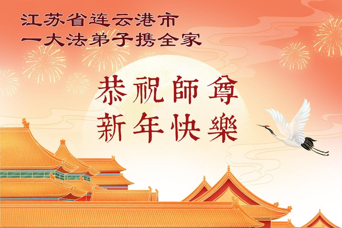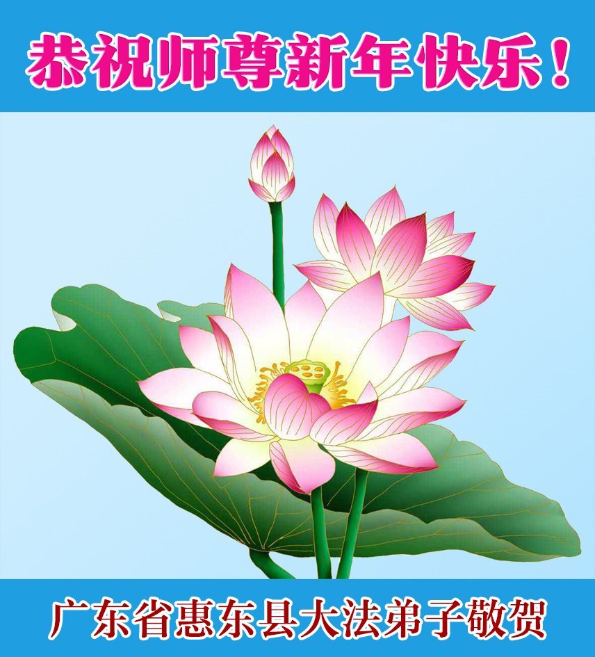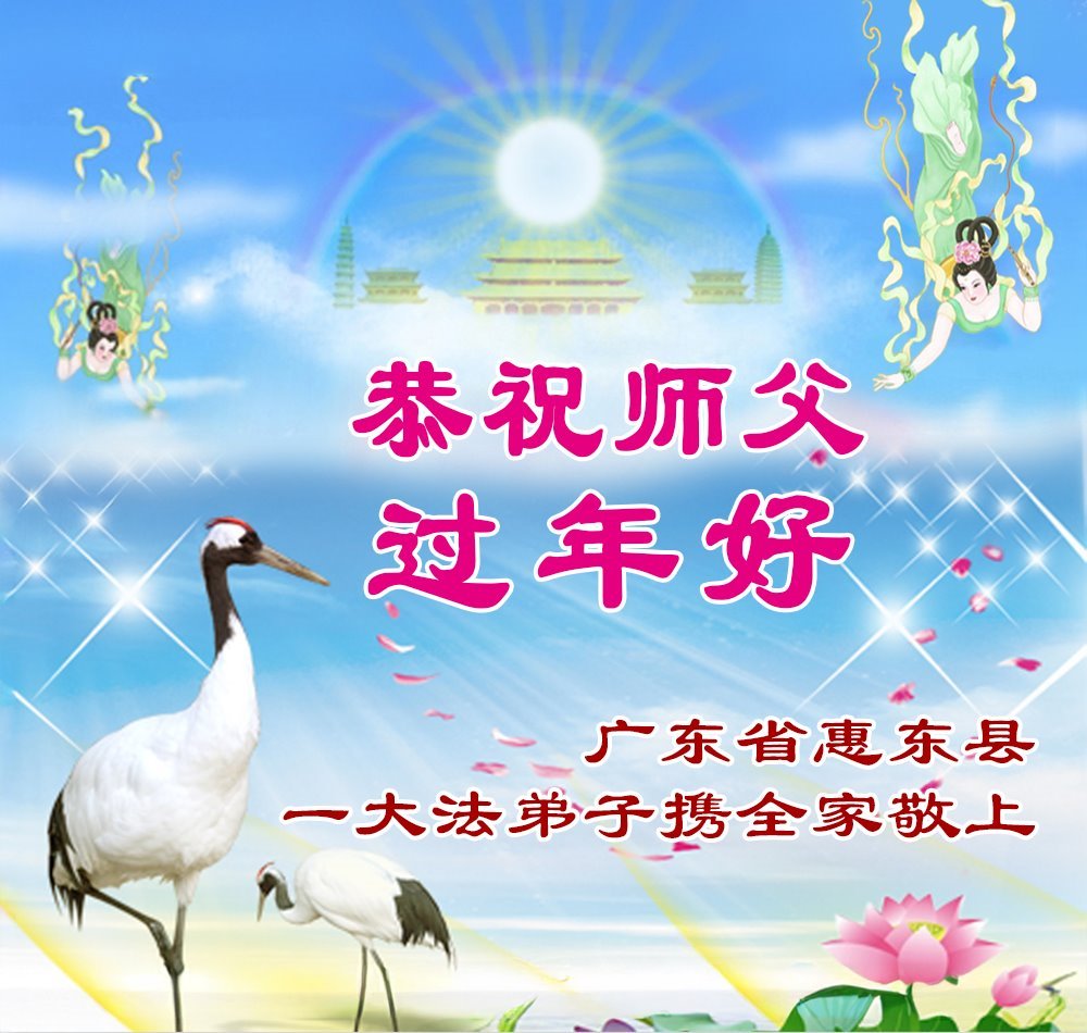 恭祝慈悲伟大的师尊新年好! 江苏省常州市东部夫妻大法弟子敬上 广东省惠州市惠东县一大法弟子携全家恭祝师父过年好!