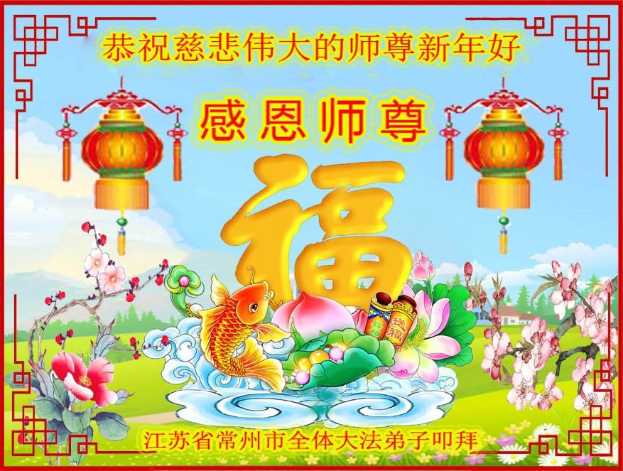 恭祝慈悲伟大的师尊新年好! 江苏省常州市全体大法弟子敬上 江苏省常州市东部全体大法弟子恭祝慈悲伟大的师尊新年好!