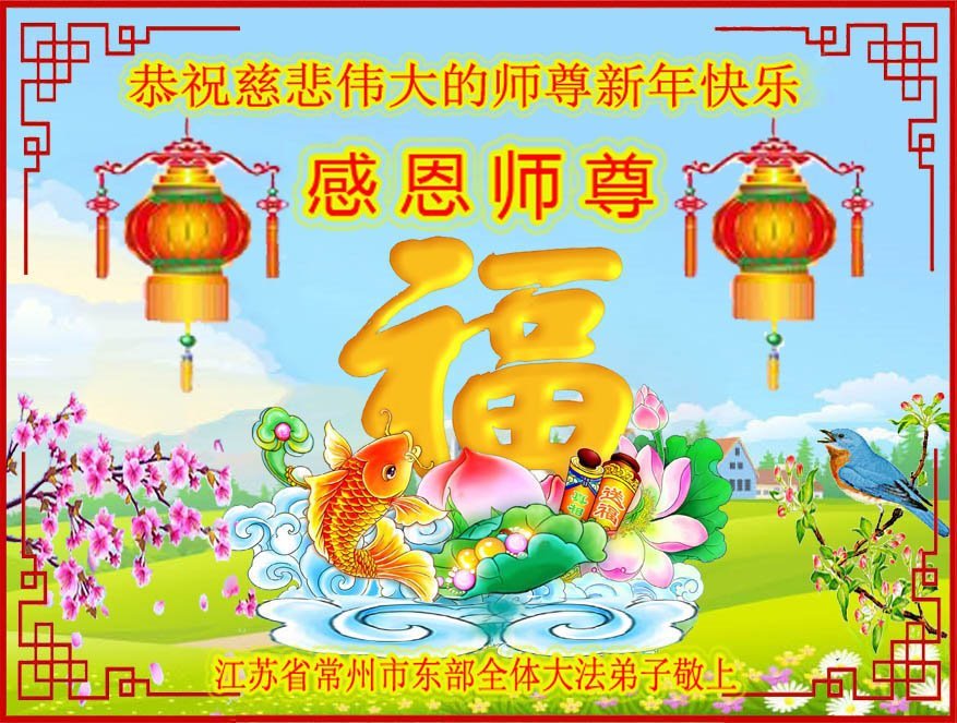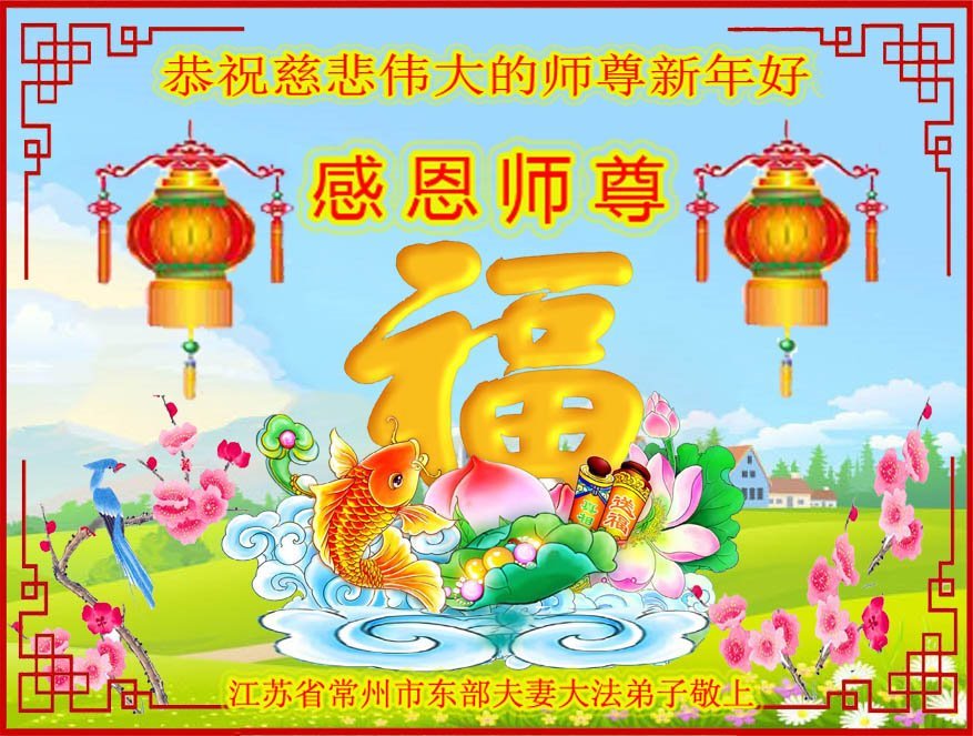 恭祝慈悲伟大的师尊新年好! 江苏省常州市东部全体大法弟子敬上 江苏省常州市东部夫妻大法弟子恭祝慈悲伟大的师尊新年好!