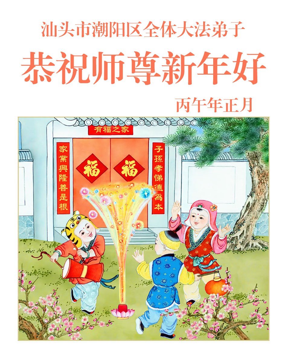 广东省汕头市潮阳区全体大法弟子恭祝师尊新年好!