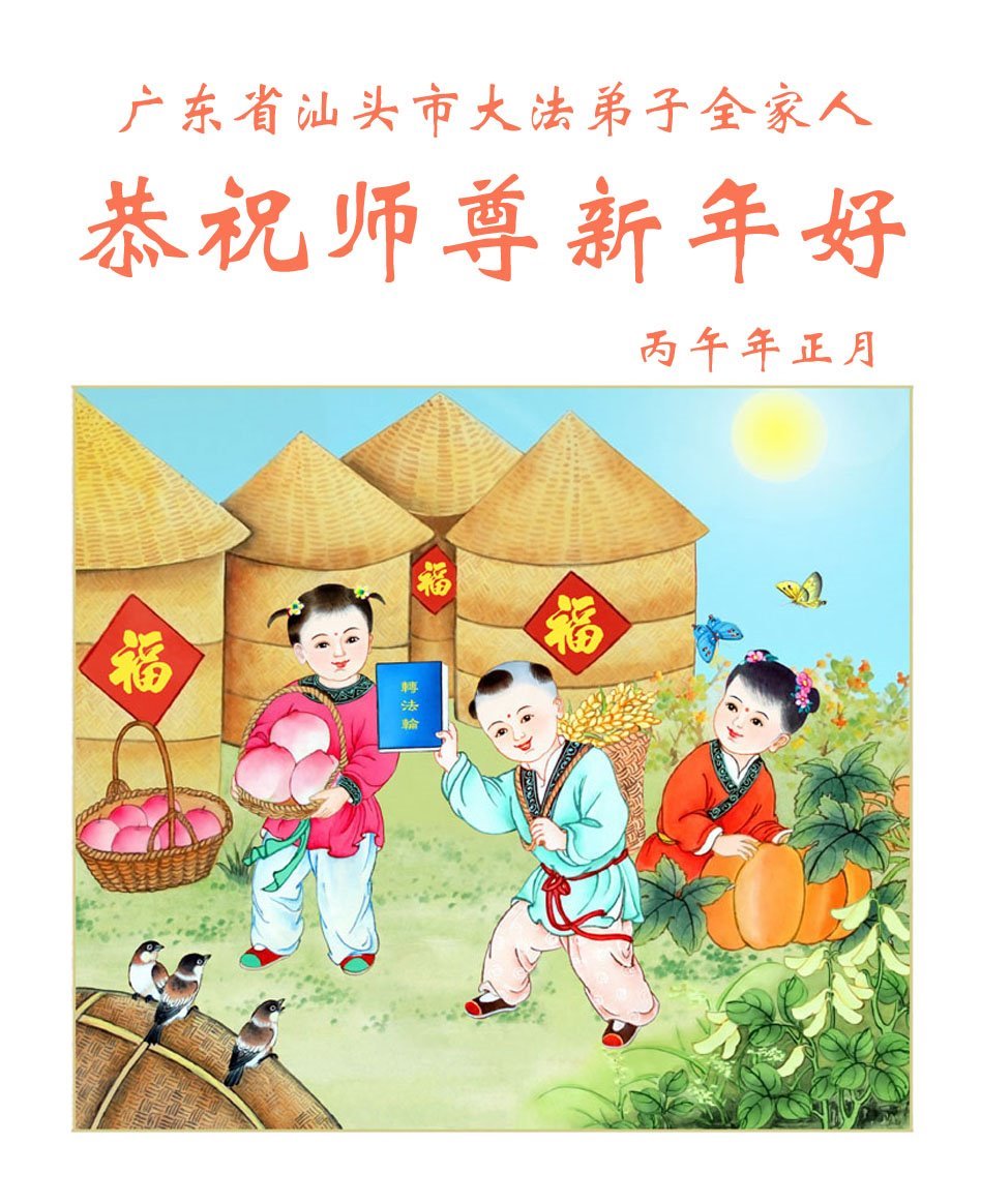 广东省汕头市大法弟子全家人恭祝师尊新年好!