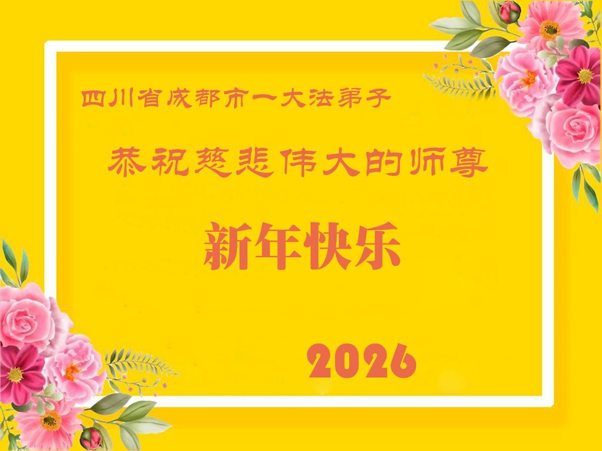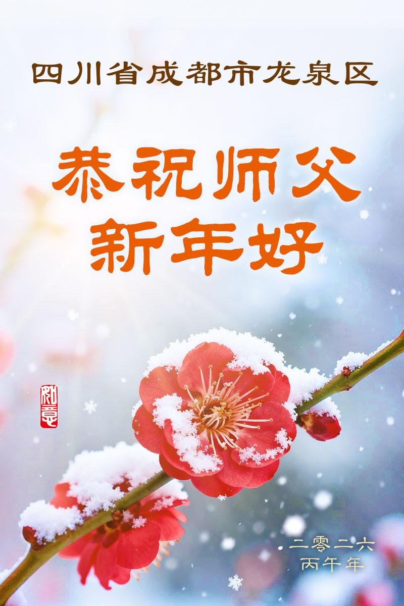 四川省成都市龙泉驿全体大法弟子 二零二六年一月十七日 四川省成都市一大法弟子全家恭祝慈悲伟大的师尊新年快乐!