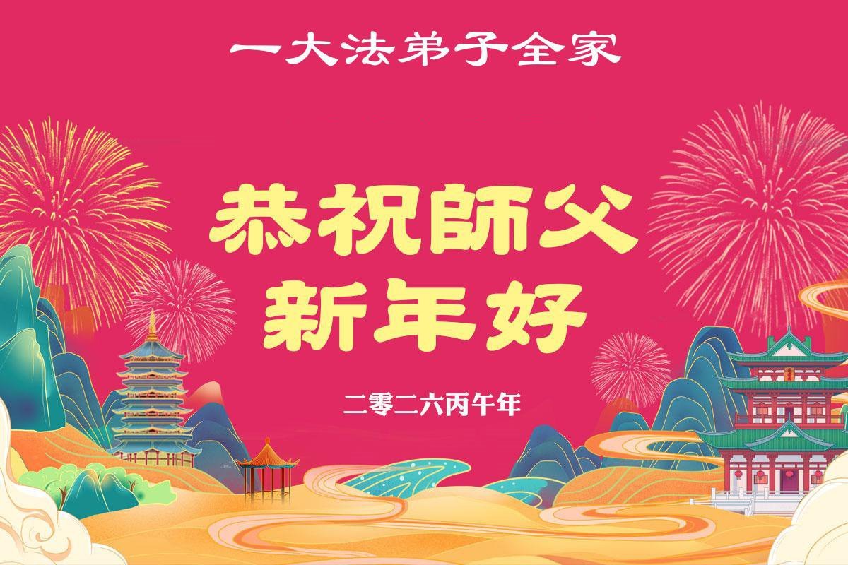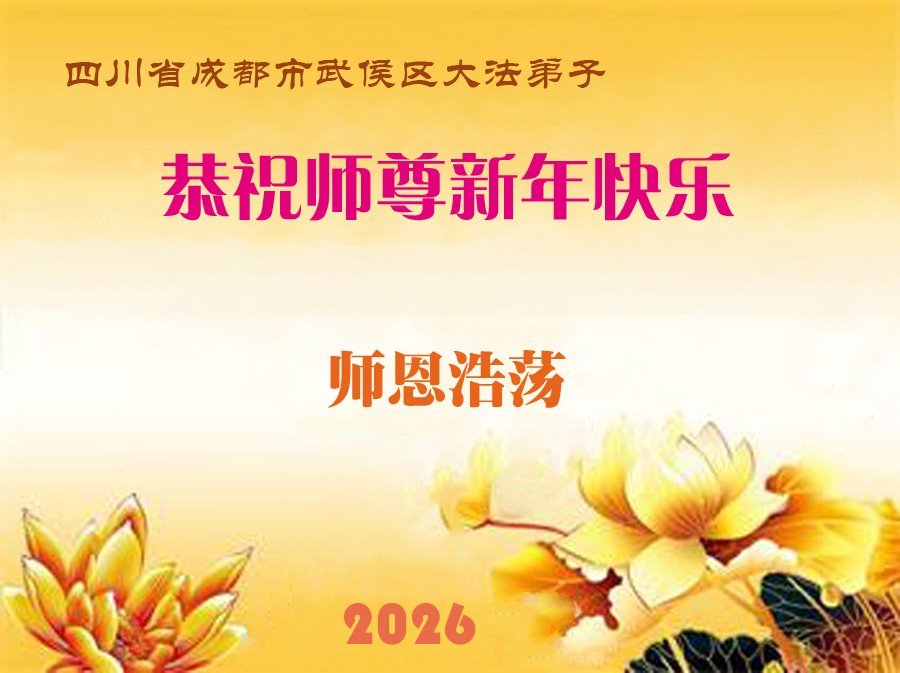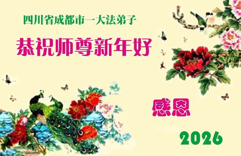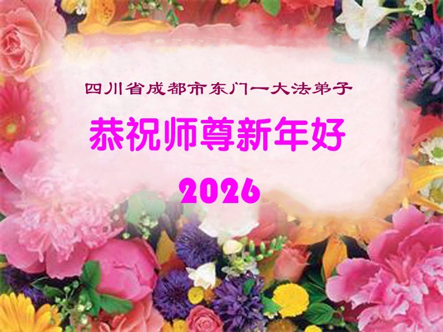 师尊啊!弟子在您慈悲的保护下又走过了一年!这一年之不易又是靠着师尊的保护下能走到今天!弟子全家感恩不尽!弟子们用尽人间语言也感恩不尽师恩浩荡!在这最后的日子里弟子一定要做好该做的以表感恩之意!惟愿师尊笑!盼望能早日恭迎慈悲伟大的师尊回国团聚!弟子全家感恩师尊!谢恩师尊! 四川省成都市都江堰一大法弟子全家敬贺 二零二六年一月二十五日 四川省成都市都江堰市一大法弟子全家恭祝慈悲伟大的师尊新年快乐!