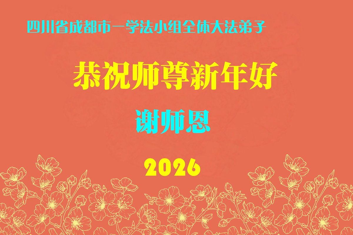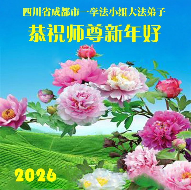 大法指引我们在这个纷乱的世界中走正路不迷失。我们一定紧跟正法進程,多学法,多救人,做好三件事。 四川省成都市东门一大法弟子 二零二六年一月二十一日 四川省成都三个学法组大法弟子恭祝师父过年好!