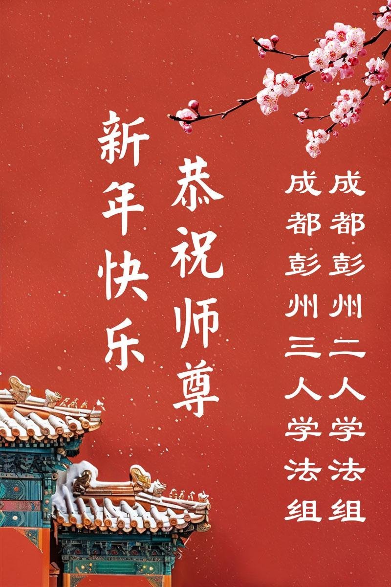 恭祝师尊新年快乐! 四川省成都市西门一中年女大法弟子敬上 二零二六年一月二十二日 四川省成都市彭州市二人和三人学法小组大法弟子恭祝慈悲伟大的师尊新年好!