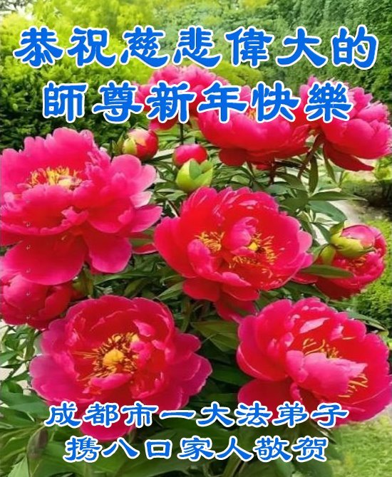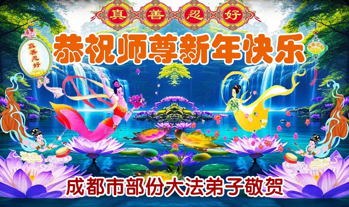 恭祝师尊新年快乐! 天上人间共庆贺! 四川省成都市全体大法弟子敬上 四川省成都市都江堰一大法弟子全家恭祝慈悲伟大的师尊新年快乐!