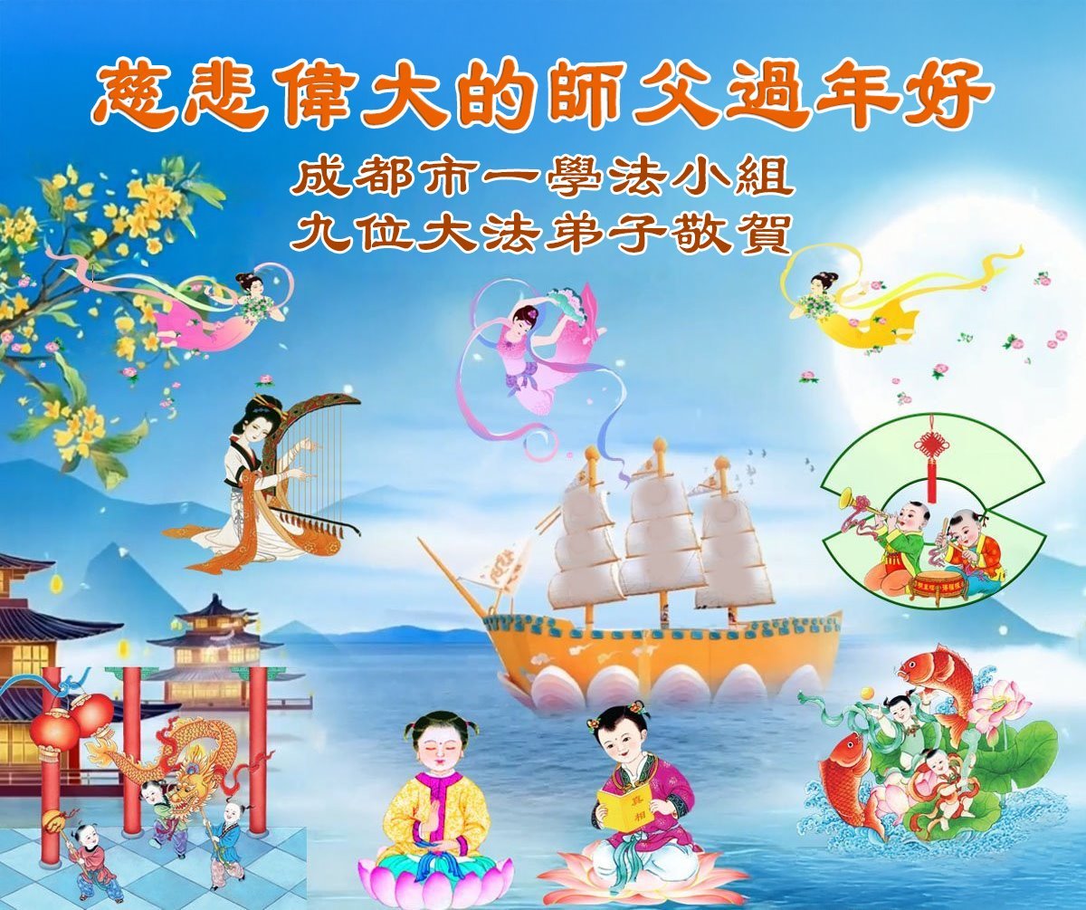 四川省成都市9位学法小组大法弟子恭祝慈悲伟大的师父过年好!