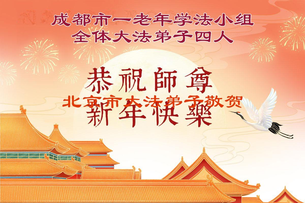 弟子一定在修炼路上精進实修,救众生,跟师父回家。 四川省成都市西门一大法弟子 二零二六年一月二十日 四川省成都市北门一学法小组大法弟子恭祝慈悲伟大的师父过年好!