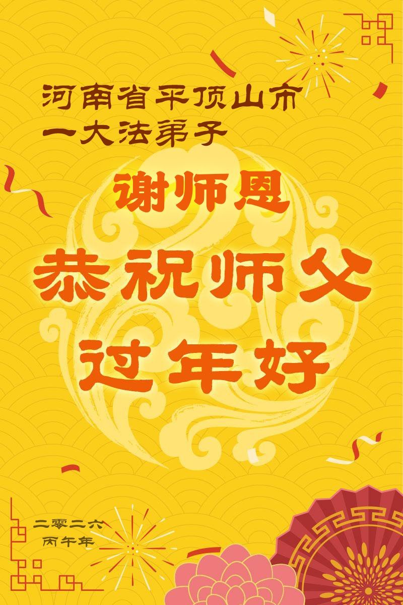 恭祝师父过年好! 河南省平顶山市一大法弟子敬上 河南省郑州市全体大法弟子恭祝师尊过年好!