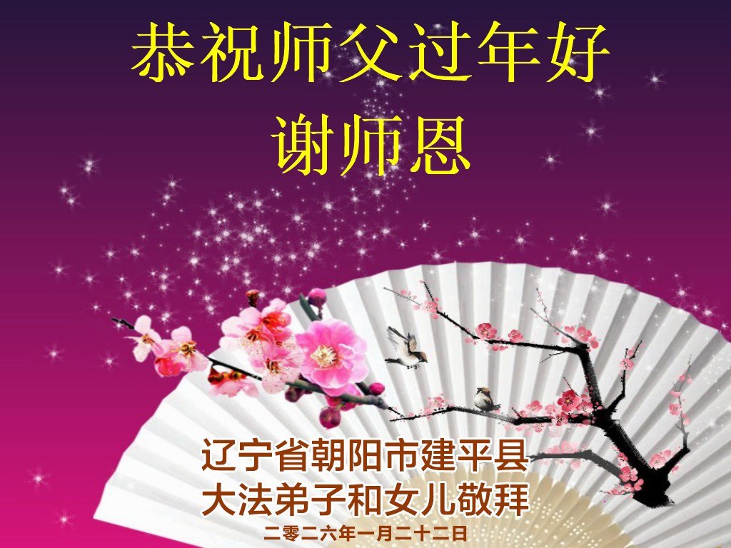 恭祝师父过年好! 辽宁省朝阳市建平县大法弟子和女儿敬上 辽宁省大连一大法弟子及家人恭祝师尊新年快乐!