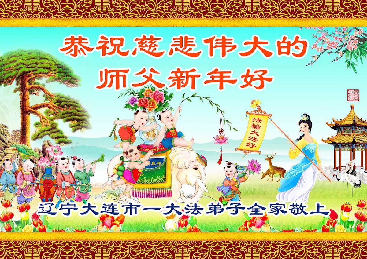 恭祝师尊过年好! 辽宁省大连市一大法弟子全家敬上 辽宁省铁岭市调兵山市全体大法弟子恭祝师尊过年好!