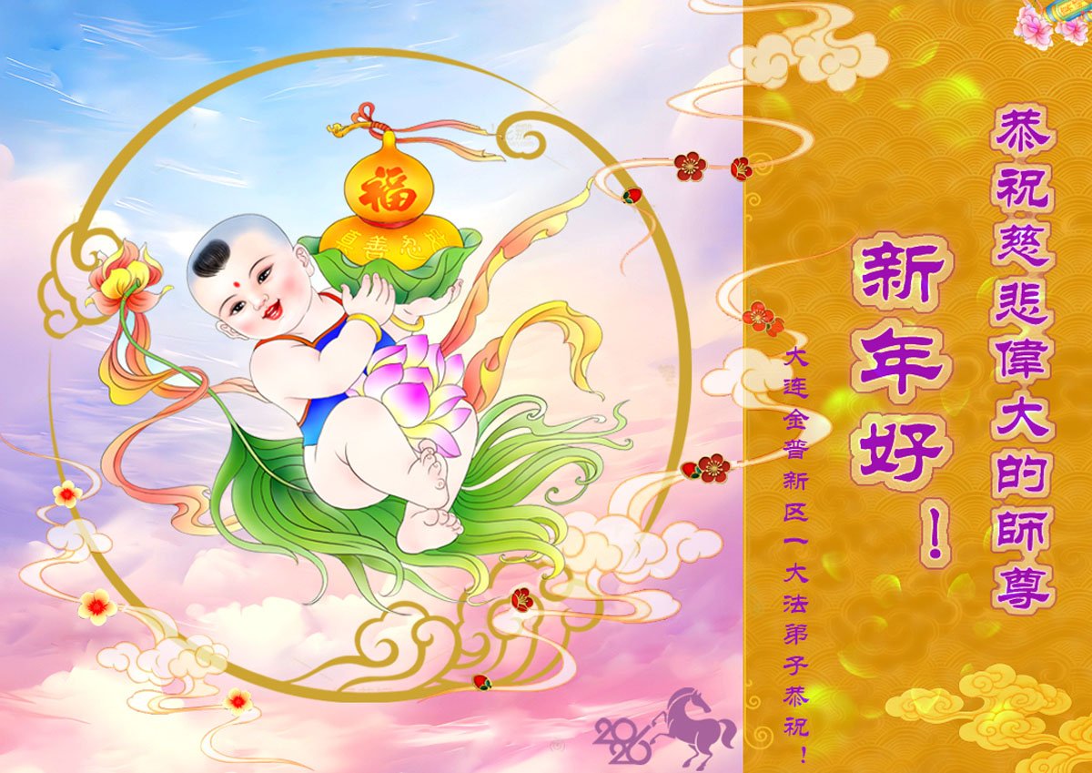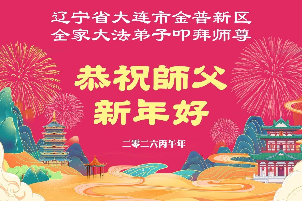 弟子敬拜师尊过年好,感恩伟大师尊的慈悲救度!在新的一年里,弟子一定听师父的话,按照修炼人的标准严格要求自己,多学法,学好法,遇事向内找,实修心性,做好师父叫做的三件事,助师救度更多的众生,让师父多一份欣慰,少一些操劳,圆满随师回归真正的家园。 抚顺市大法弟子 二零二六年一月二十四日 辽宁省大连市金普新区一大法弟子恭祝慈悲伟大的师尊新年好!