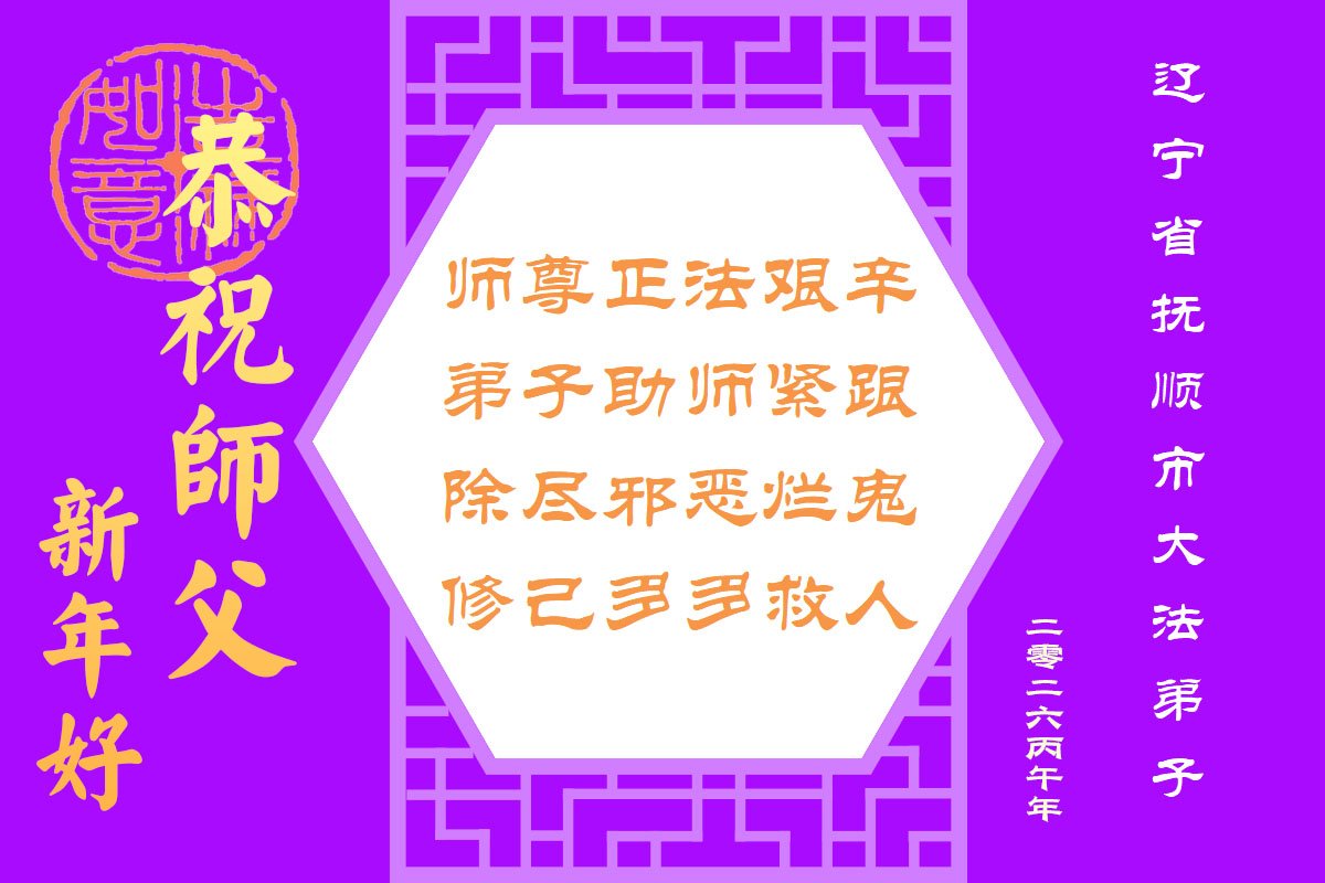 恭祝师父新年好! 辽宁省抚顺市十名大法弟子敬上 二零二六年一月二十七日 辽宁省抚顺市一学法小组大法弟子恭祝师父新年快乐!