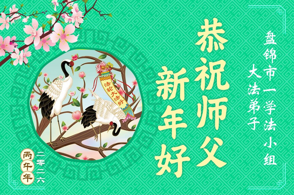 恭祝师父新年快乐!感恩师尊慈悲救度!师父辛苦了! 弟子一定努力做好三件事,跟上正法進程,圆满随师还。 辽宁省大连金普新区一学法小组大法弟子敬上 二零二六年一月二十五日 辽宁省大连市金普新区一夫妻俩大法弟子恭祝师父新年好!
