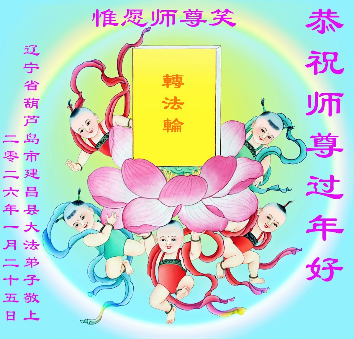 恭祝师尊新年快乐!法轮大法好!真善忍好! 辽宁省一学法小组5人大法弟子敬上 2026年1月26日 辽宁省一学法小组5人大法弟子恭祝师父新年快乐!