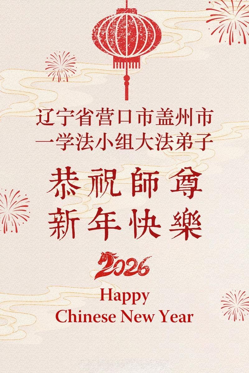 恭祝慈悲伟大的师父过年好! 辽宁省大连市一学法小组五位大法弟子敬上 二零二六年一月二十六日 辽宁省营口市盖州市一学法小组大法弟子恭祝师尊过年好!