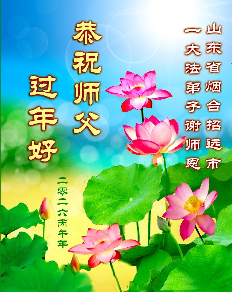 在二零二六年中国新年即将到来之际,弟子向慈悲伟大的师父提前拜年!大家合十齐声念“大法弟子恭祝师尊过年好,法轮大法好,真善忍好”,表达内心的无限的感恩!给师父拜年! 山东济南大法弟子敬贺 二零二六年一月二十五日 山东省烟台招远市一大法弟子恭祝师父过年好!