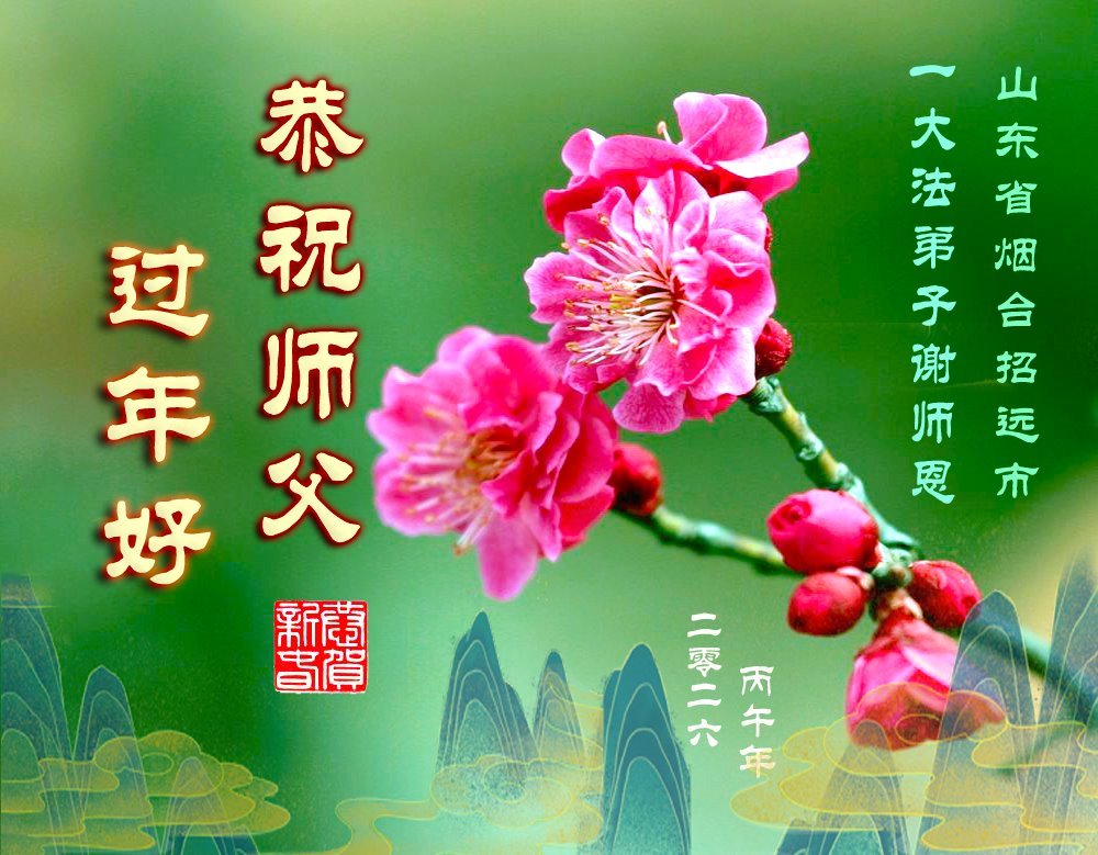 恭祝师尊新年快乐! 山东省潍坊市一学法小组大法弟子敬上 山东省威海市文登区一大法弟子恭祝慈悲伟大师父过年好!