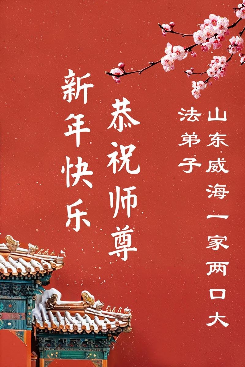 恭祝师尊新年快乐! 山东省保险业全体大法弟子敬上 二零二六年一月二十五日 山东省威海市荣成市俚岛镇大法弟子恭祝慈悲伟大的师尊新年快乐!