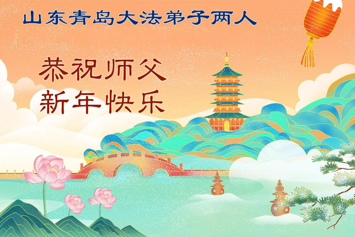 山东省青岛市大法弟子二人恭祝师父新年快乐!
