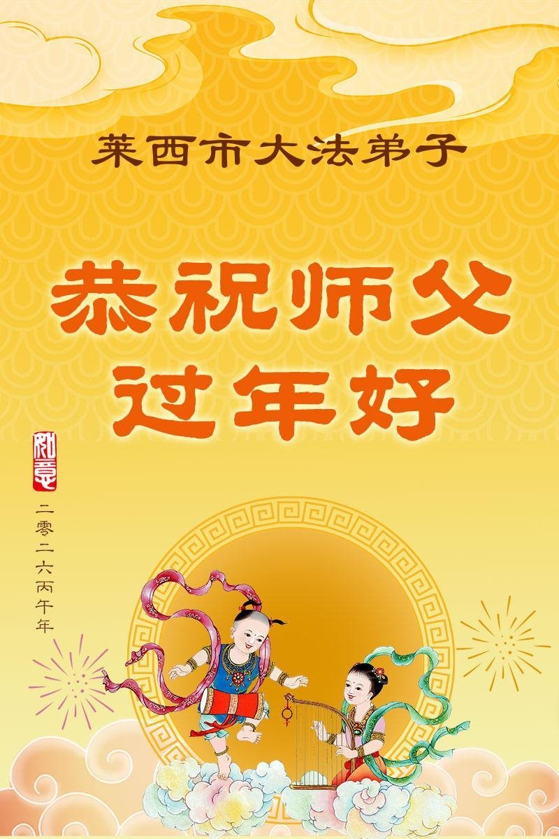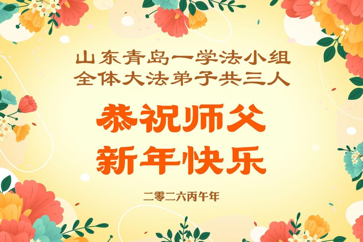 恭祝师父新年快乐!感谢尊慈悲苦度,我们一定坚信师父坚信大法,完成大法弟子的使命,跟师父回家。 山东省青岛市大法弟子二人敬上 二零二六年一月二十四日 山东省青岛市莱西市城区一老年学法小组大法弟子恭祝师父新年快乐!