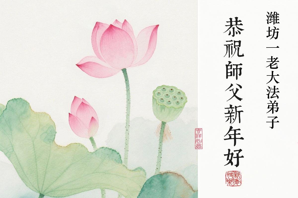 恭祝师尊新年快乐! 山东省济南一学法小组全体大法弟子敬上 二零二六年一月二十四日 山东省青岛市一大法弟子恭祝师尊新年快乐!