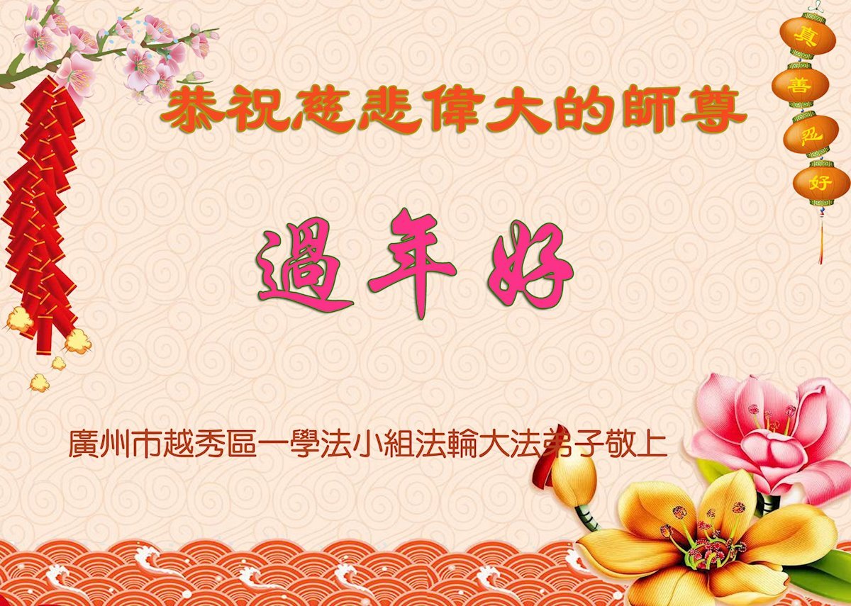 恭祝师尊过年好! 广东省广州市越秀区一学法小组大法弟子敬上 广东省广州市天河区一学法小组大法弟子恭祝慈悲伟大的师尊过年好!