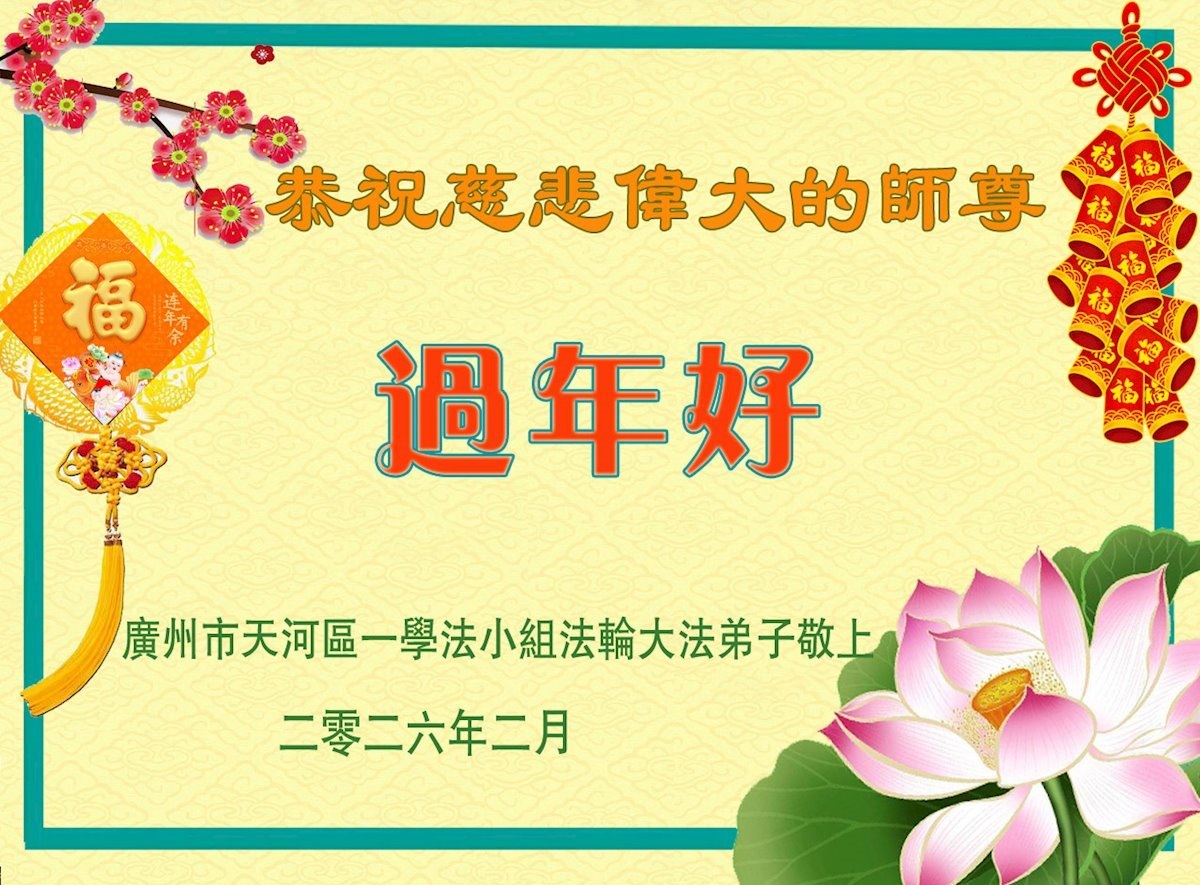 恭祝慈悲伟大的师尊过年好! 广东省广州市天河区一学法小组大法弟子敬上 广东省广州市白云区一学法小组大法弟子恭祝师尊过年好!