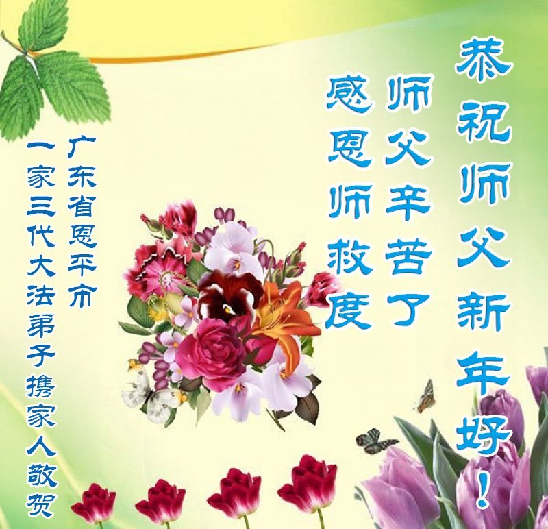 师父辛苦了!感恩师尊慈悲救度! 广东省恩平市一家三代大法弟子携家人敬上 广东省江门市恩平市一大法弟子恭祝师父过年好!