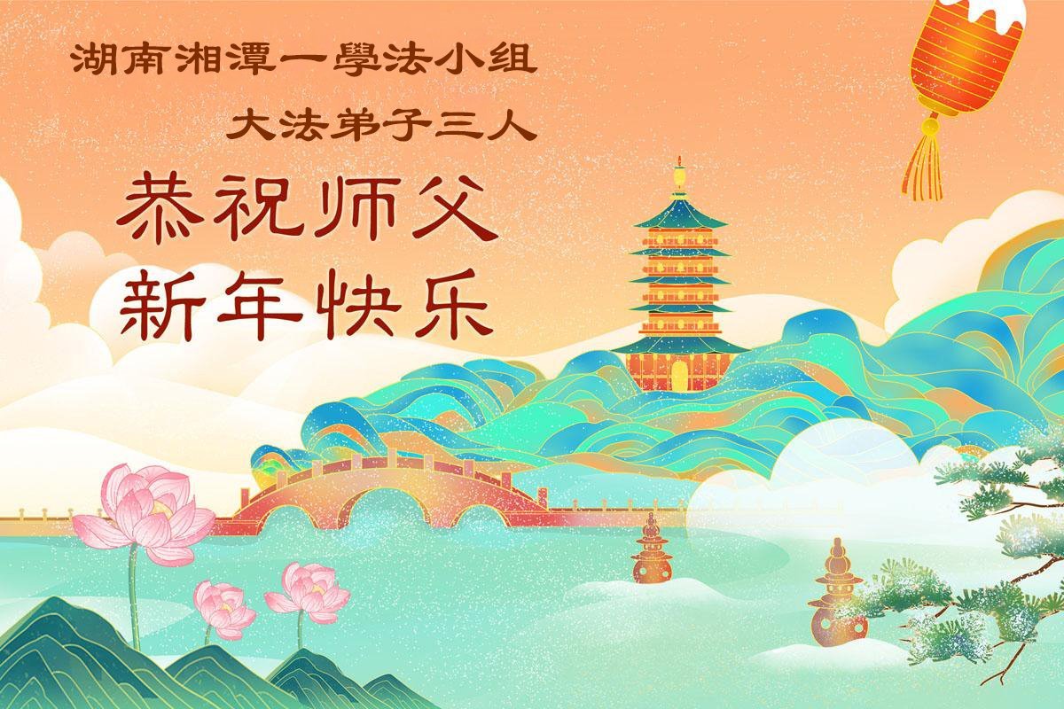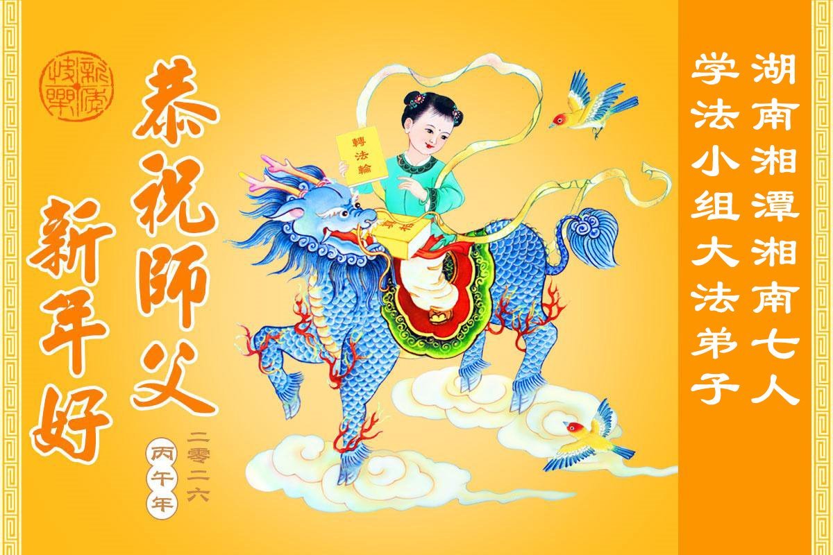 恭祝慈悲伟大的师尊过年好! 广东省汕头市全家大法弟子敬上 湖南省湘潭湘南七人学法小组大法弟子恭祝师父新年好!