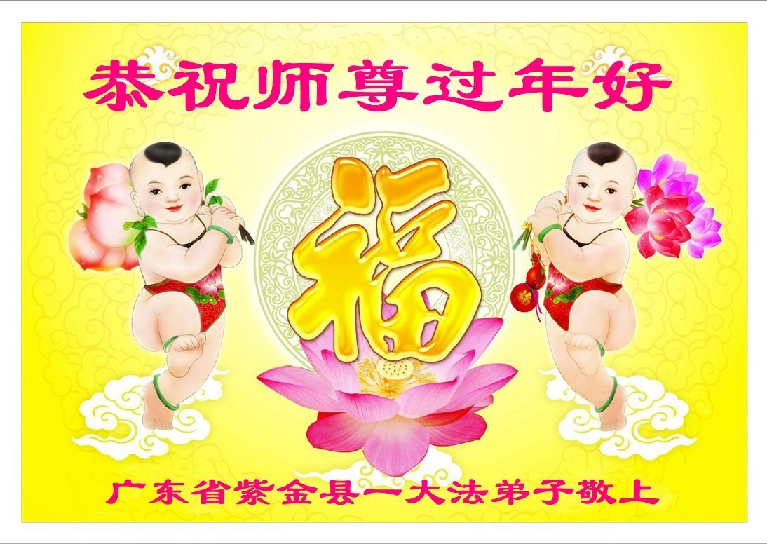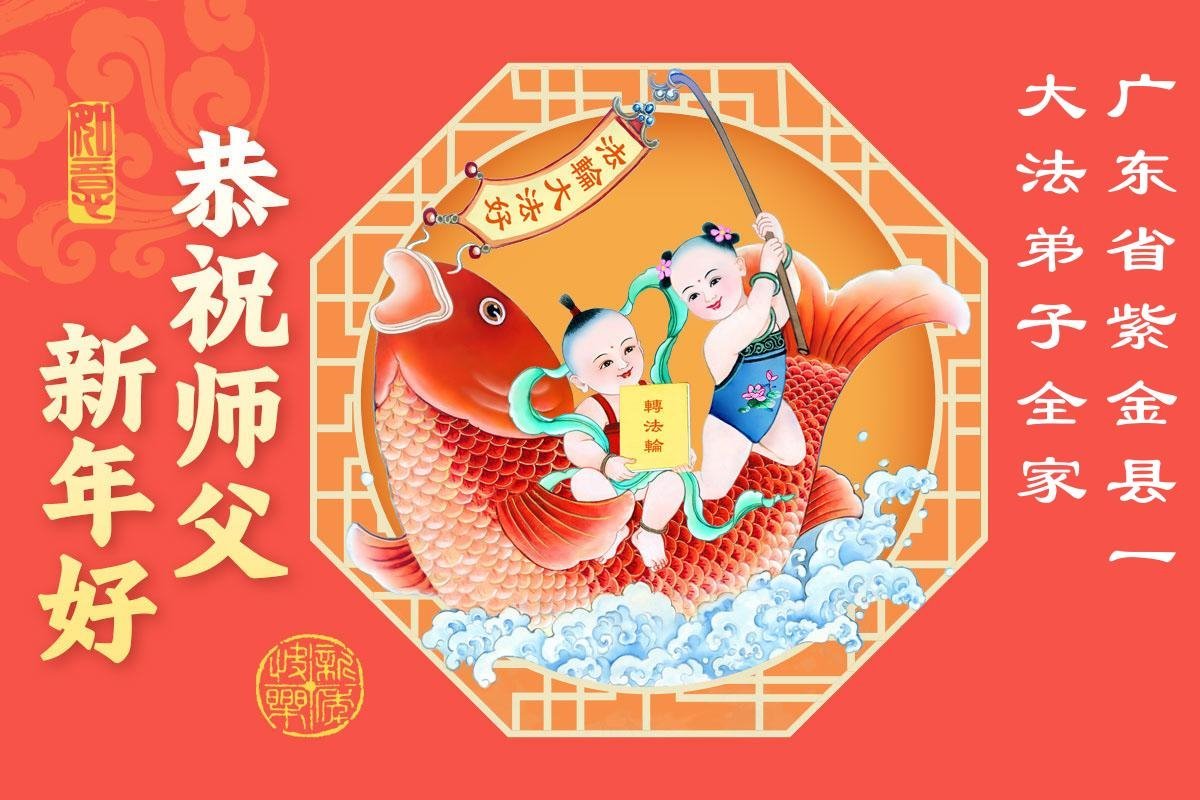 广东省河源市紫金县一大法弟子及全家恭祝师父新年好!