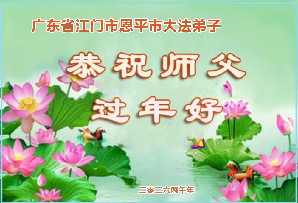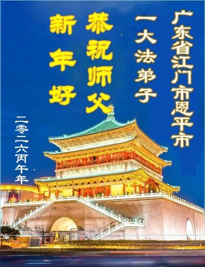 恭祝师父新年快乐!弟子要加倍努力修好自己,多救人。跟师父回家。 江苏省镇江市五位大法弟子敬上 二零二六年一月二十日 广东省江门市新会区全体大法弟子恭祝师父新年好!