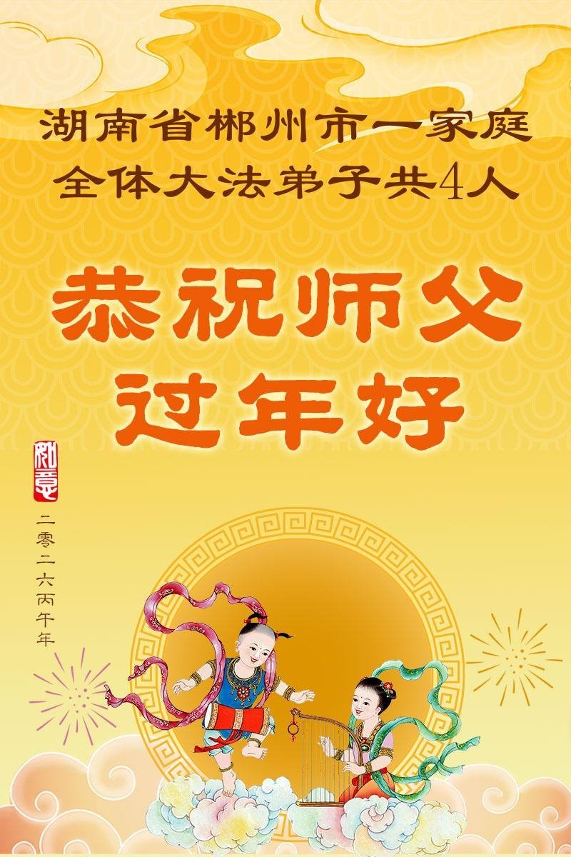 湖南省郴州市一家庭全体大法弟子共4人恭祝师尊新年快乐!