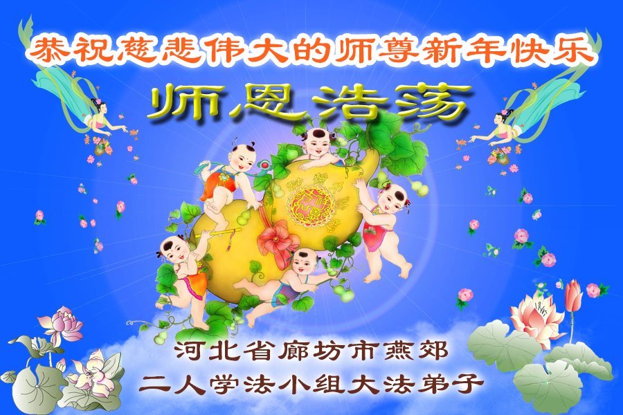 恭祝慈悲伟大的师尊过年好!师尊新年快乐! 谢谢师父的慈悲救度! 河北省承德市围场全体大法弟子敬上 河北省廊坊市燕郊一学法小组大法弟子恭祝师尊新年快乐!