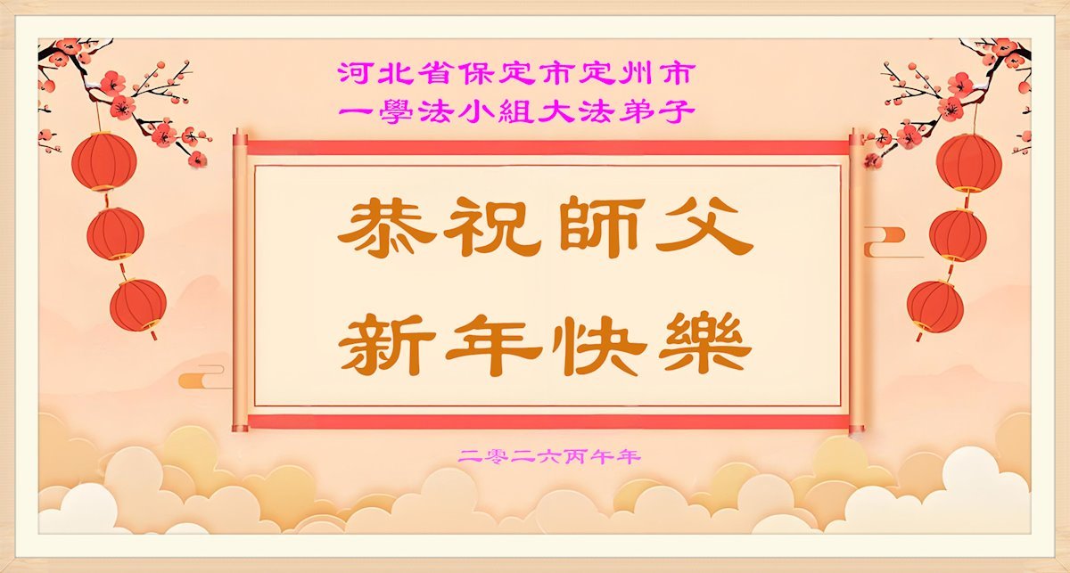 恭祝师尊新年快乐! 河北保定定州一大法弟子敬上 二零二六年一月二十五日 河北省保定定州学法小组全体大法弟子恭祝师尊新年好!